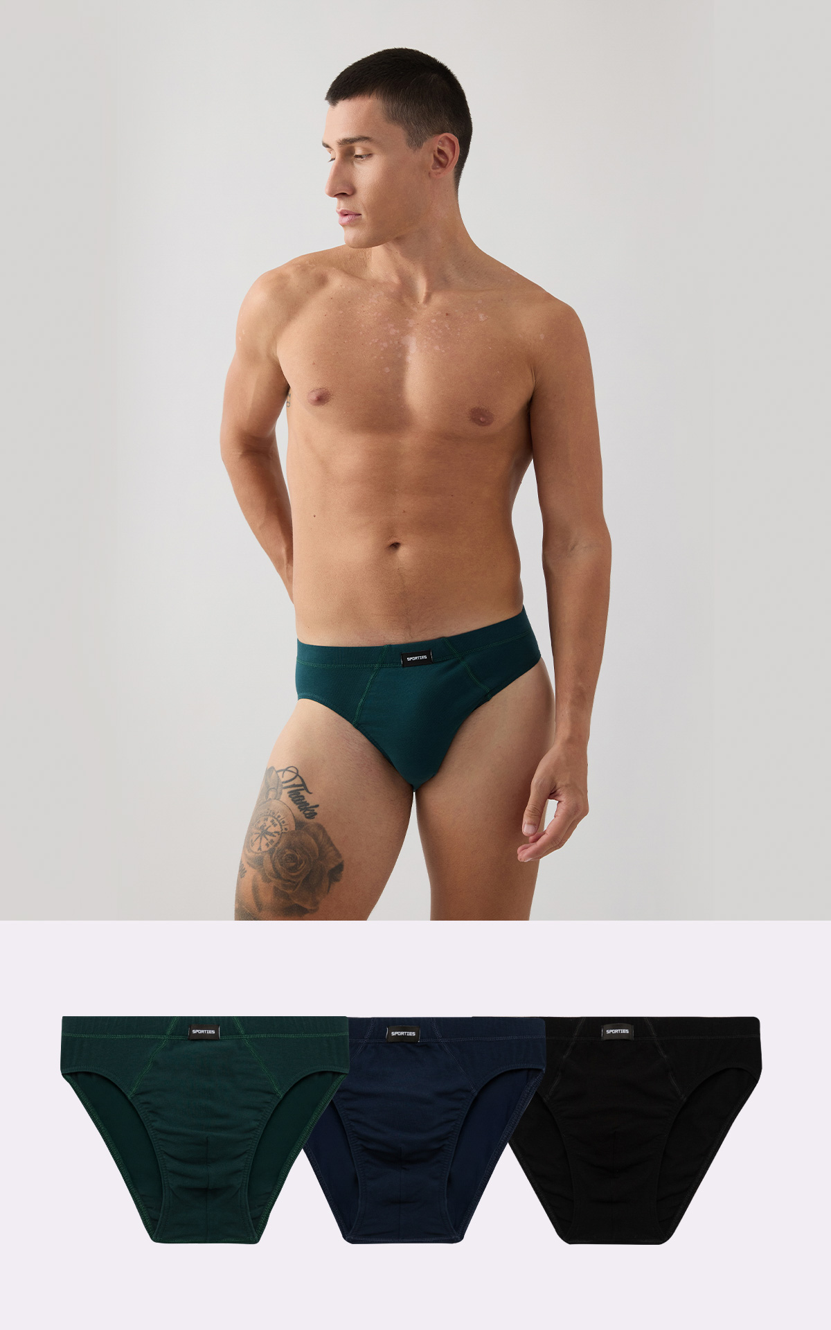 • Sporties Cotton Men's Briefs with Inner Elastic Waistband 3 pcs