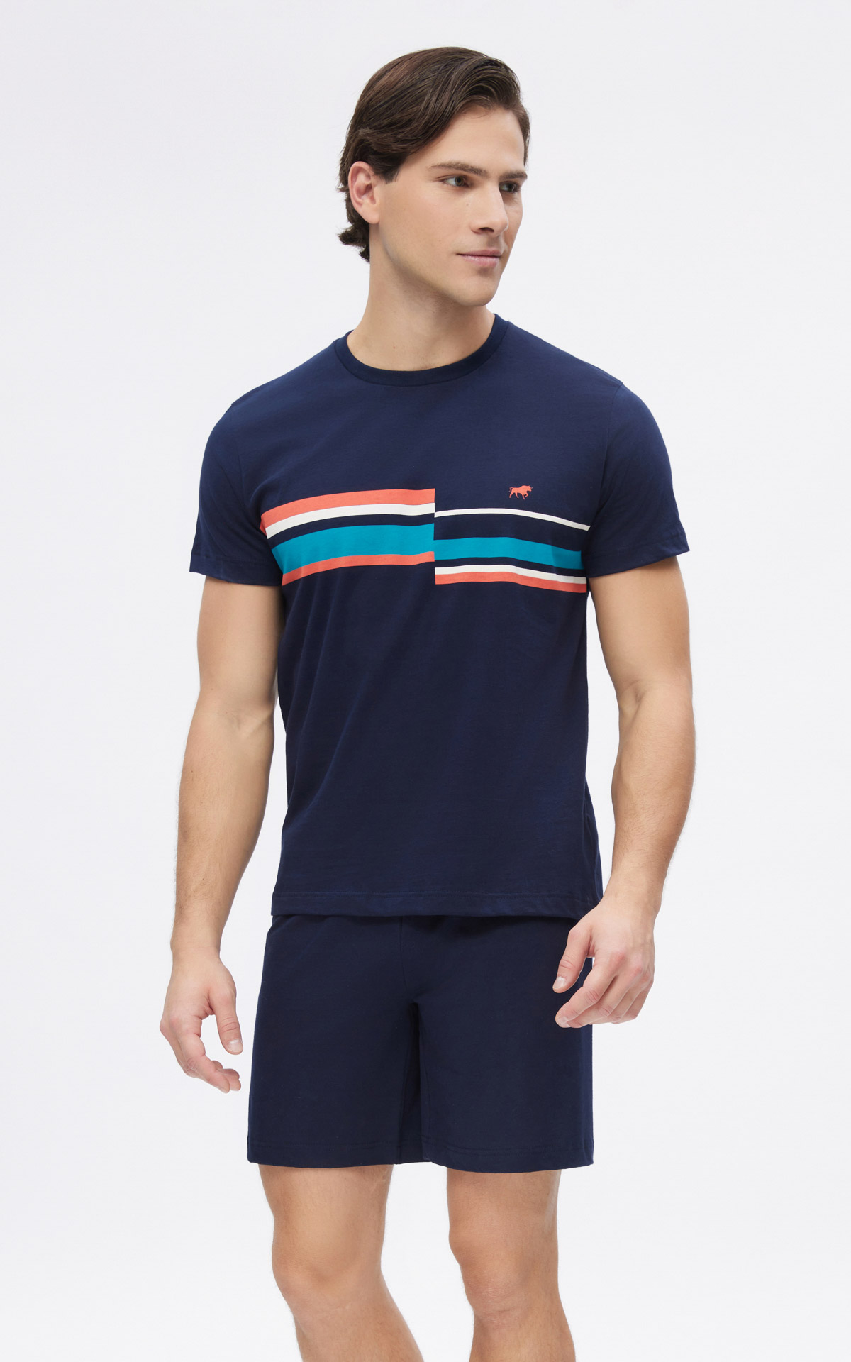 • Minerva Multi Stripes Short Sleeve Men's Pyajama Set
