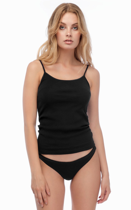 Women's top with satin straps and trim, available in a 2-piece pack, from Minerva's classic and timeless collection. Seamless on the sides, it is made from 100% combed cotton fabric, featuring the signature 1x1 Rib knit. This high-quality fabric offers comfort and durability over time without losing its shape.