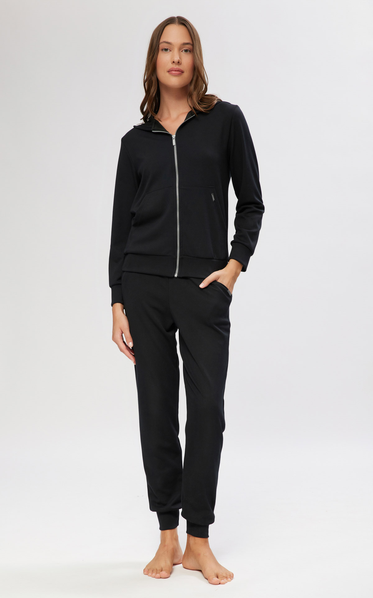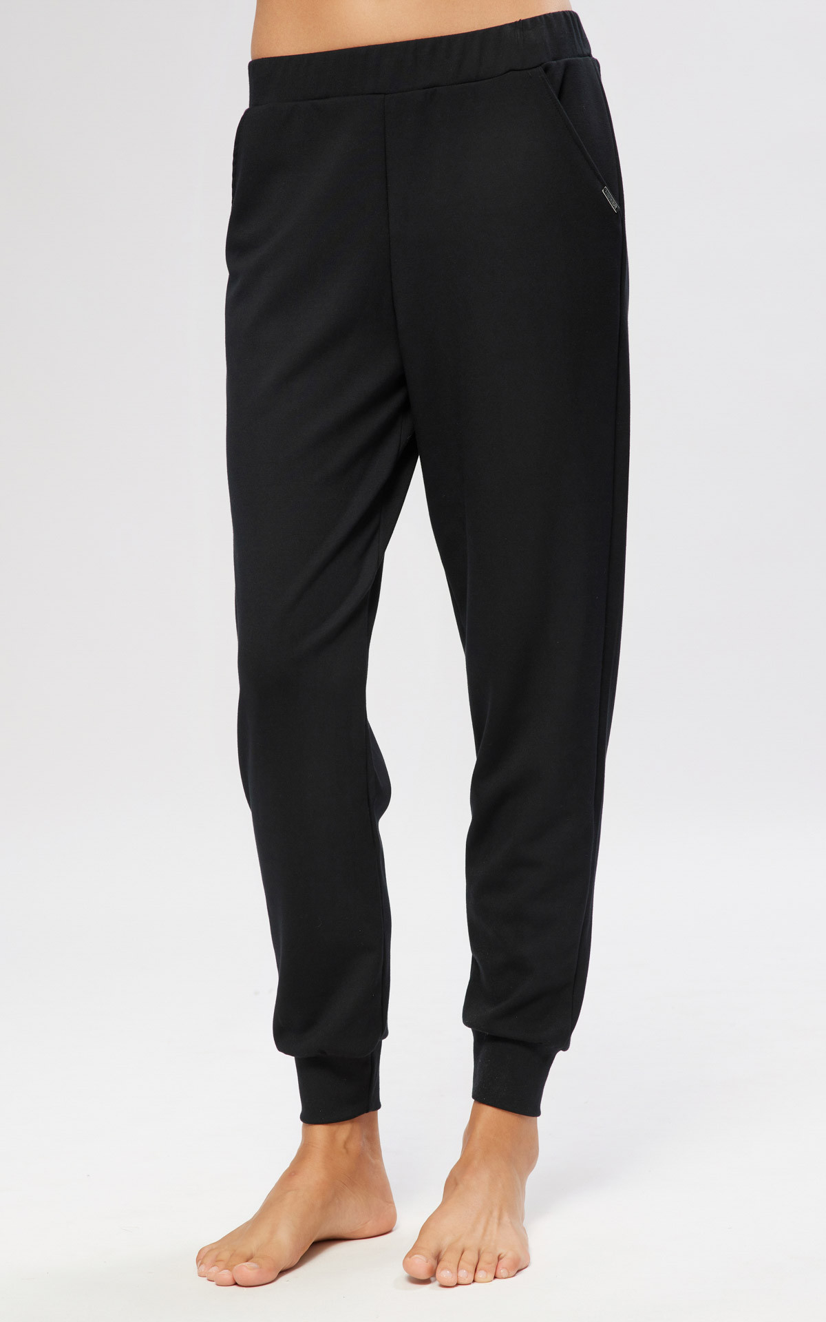 Women's pants made with TENCEL™ Modal, featuring ankle cuffs, an elastic waistband, and side pockets. Pair them with the matching jacket from the same collection for a complete look.