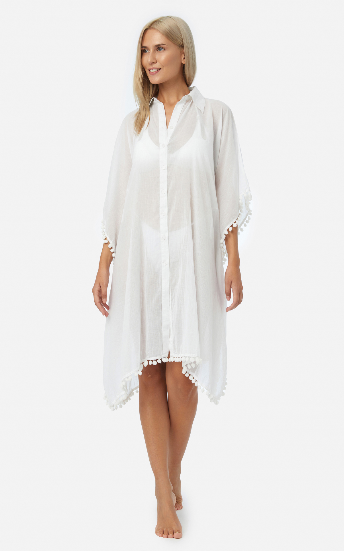 • V-Neck Womens Pon-POn Dress with Broderie Details