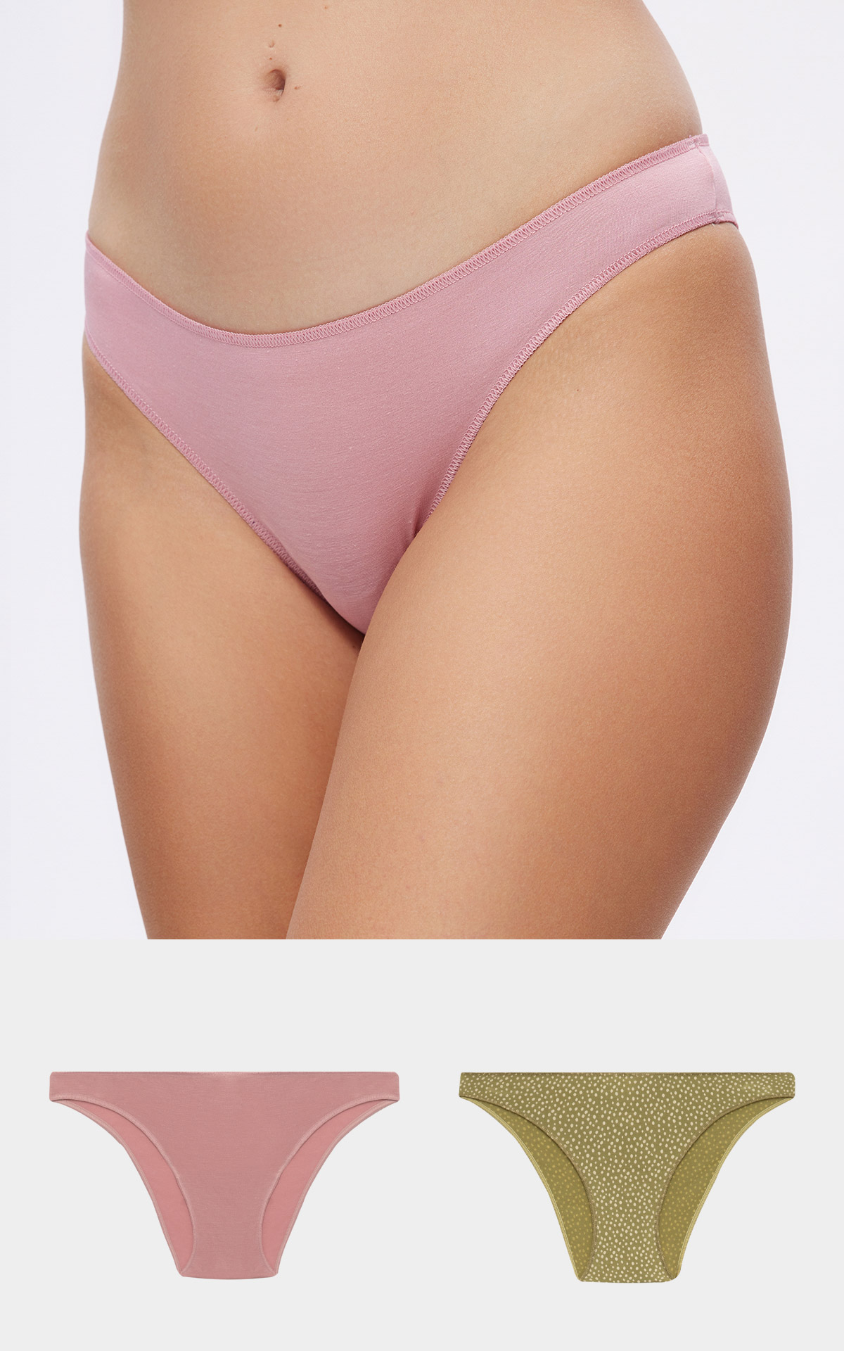 Women's rio low waist 2 pieces panties with invisible flat seams, offers comfort and perfect fit. Made with 95% TENCEL™ Modal fiber and 5% elastane, it retains color and shape, ensuring quality and comfort.