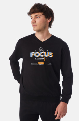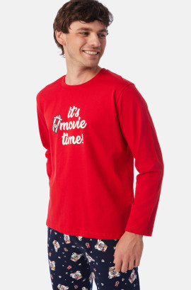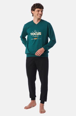 • Bull Velvet V-Neck Men's Pyjama Set with contrast sleeves