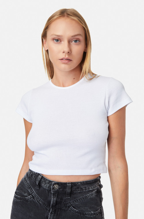 Ribbed Woman's Short Sleeve Crew Neck Top
