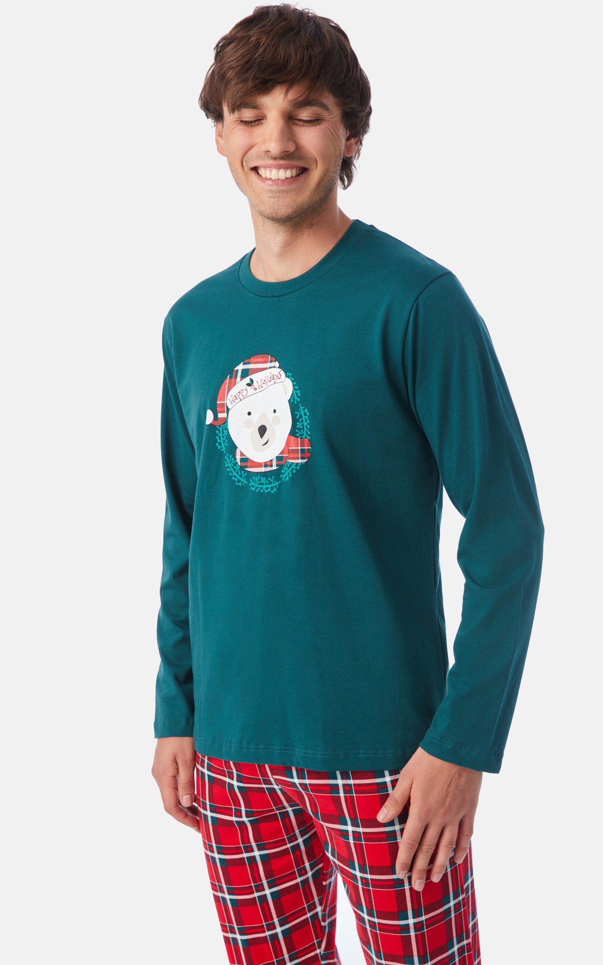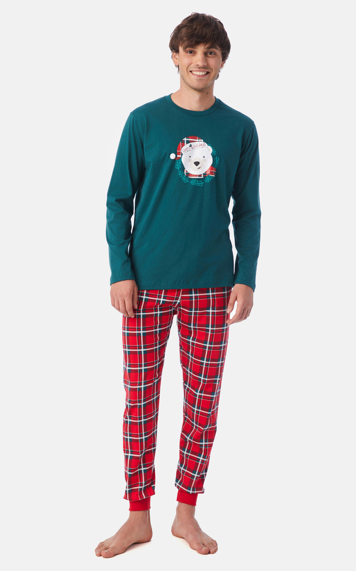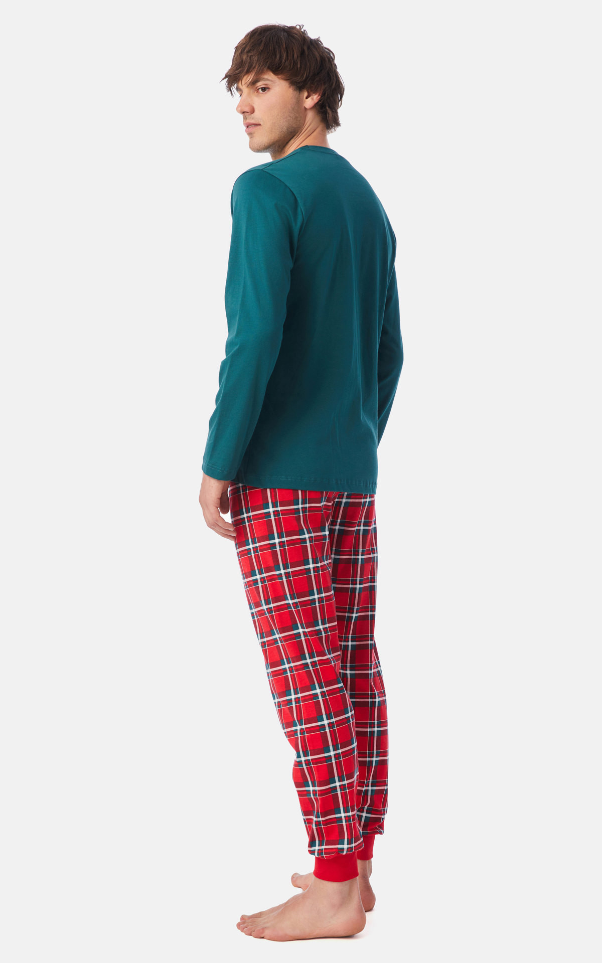 • Bull Velvet V-Neck Men's Pyjama Set with contrast sleeves